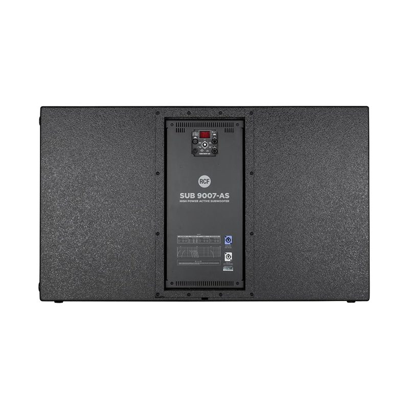 De SUB 9007-AS is een van de krachtigste 2×21 “subwoofers op het gebied van live geluid. Met twee high-power, hyper-geventileerde 21 “neodymium-woofers met 4,0” binnen-buiten stemspoelen, levert deze kast een serieus aantal lage frequenties. Aangedreven door een 7200 W digitale versterker, kan de SUB 9007-AS presteren in de meest veeleisende situaties. De behuizing van de SUB 9007-AS komt overeen met de RCF D-Line HDL 50 en HDL 20 array-systemen, waardoor gestapelde systemen konden worden gecombineerd met een perfecte combinatie.